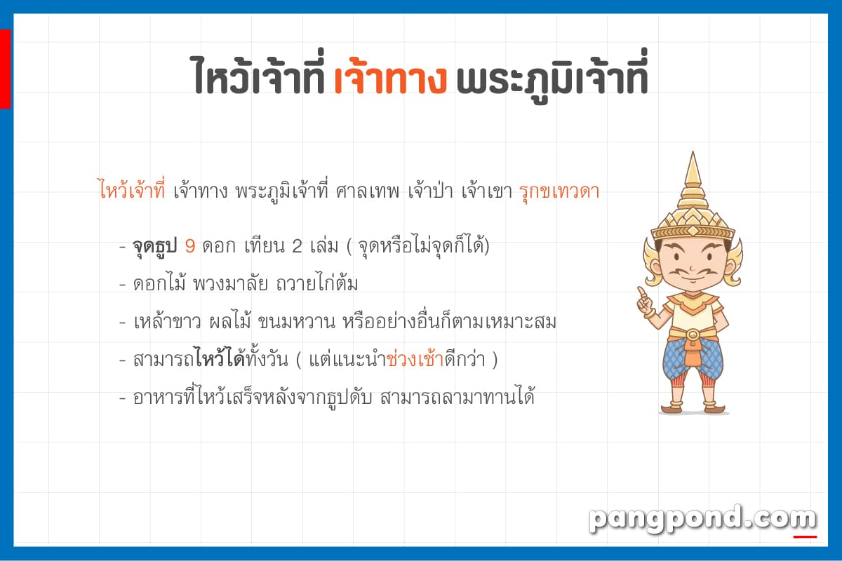 - ไหว้เจ้าที่ เจ้าทาง : ใช้ธูป 7 ดอก