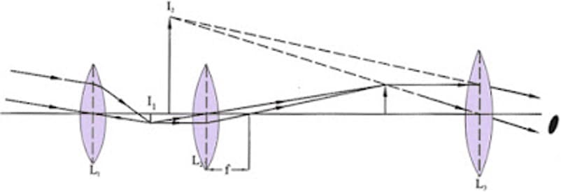 ปัจจุบันเราสามารถทําให้ภาพเสมือนที่มองเห็นเป็นภาพหัวตั้ง โดยใส่เลนส์นูนตัวที่ 3 แทรกไว้ระหว่างเลนส์ใกล้วัตถุกับเลนส์ใกล้ตาดังรูป