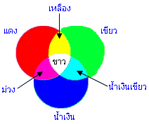 ทั้ง 3 แสงสีปฐมภูมิรวมกัน จะได้แสงขาว