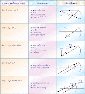 เมื่อ s′= ระยะภาพ s = ระยะวัตถุ