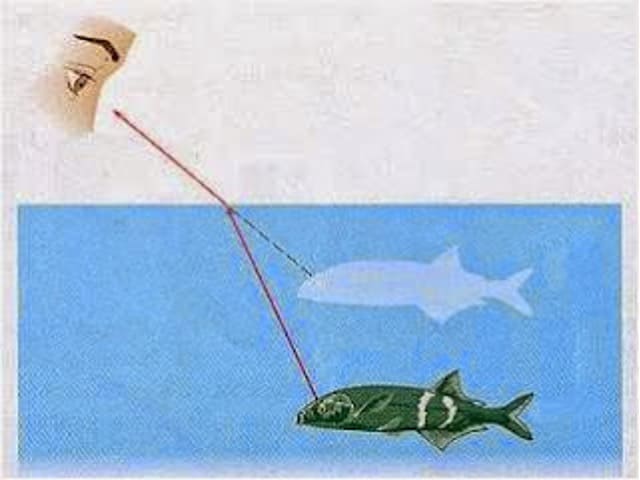 พิจารณาตัวอย่างการมองวัตถุที่จมอยูใต้น้ำ เราจะเห็นวัตถุนั้นอยูตื้นกว่าความเป็นจริง ทั้งนี้เพราะแสงที่สะท้อนออกมาจากวัตถุนั้น เมื่อเคลื่อนที่ออกจากน้ำมาสู่อากาศแล้วเข้าตาเรานั้น แสงจะเกิดการหักเห แต่เนื่องจากสายตาของคนเราจะมองตรงเสมอ เราจึงมองเห็นวัตถุอยูตื้นกว่า ความเป็นจริงดังแสดงในรูป
