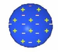 จากทฤษฎีอะตอมของทอมสัน แบบจำลองอะตอมมีลักษณะดังรูป