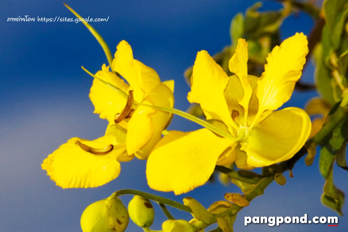- ดอกไม้ประจำชาติ ดอกไม้ประจำชาติไทยคือ ดอกราชพฤกษ์ (Ratchaphruek) มีสีเหลืองสวยสง่างาม เมื่อเบ่งบานแล้วให้ความรู้สึกอบอุ่น ถือเป็นสัญลักษณ์ของความมีเกียรติยศศักดิ์ศรี ซึ่งชาวไทยหลายคนรู้จักกันดีในนามของ “ดอกคูน” โดยมีความเชื่อว่าสีเหลืองอร่ามของดอกราชพฤกษ์คือสีแห่งพระพุทธศาสนาและความรุ่งโรจน์ รวมทั้งยังเป็นสัญลักษณ์แห่งความสามัคคีปรองดองของคนในชาติอีกด้วย โดยดอกราชพฤกษ์จะเบ่งบานในช่วงเดือนกุมภาพันธ์–พฤษภาคม มีจุดเด่นเวลาเบ่งบานคือการผลัดใบออกจนหมดต้น เหลือไว้เพียงแค่สีเหลืองอร่ามของดอกราชพฤกษ์เท่านั้น