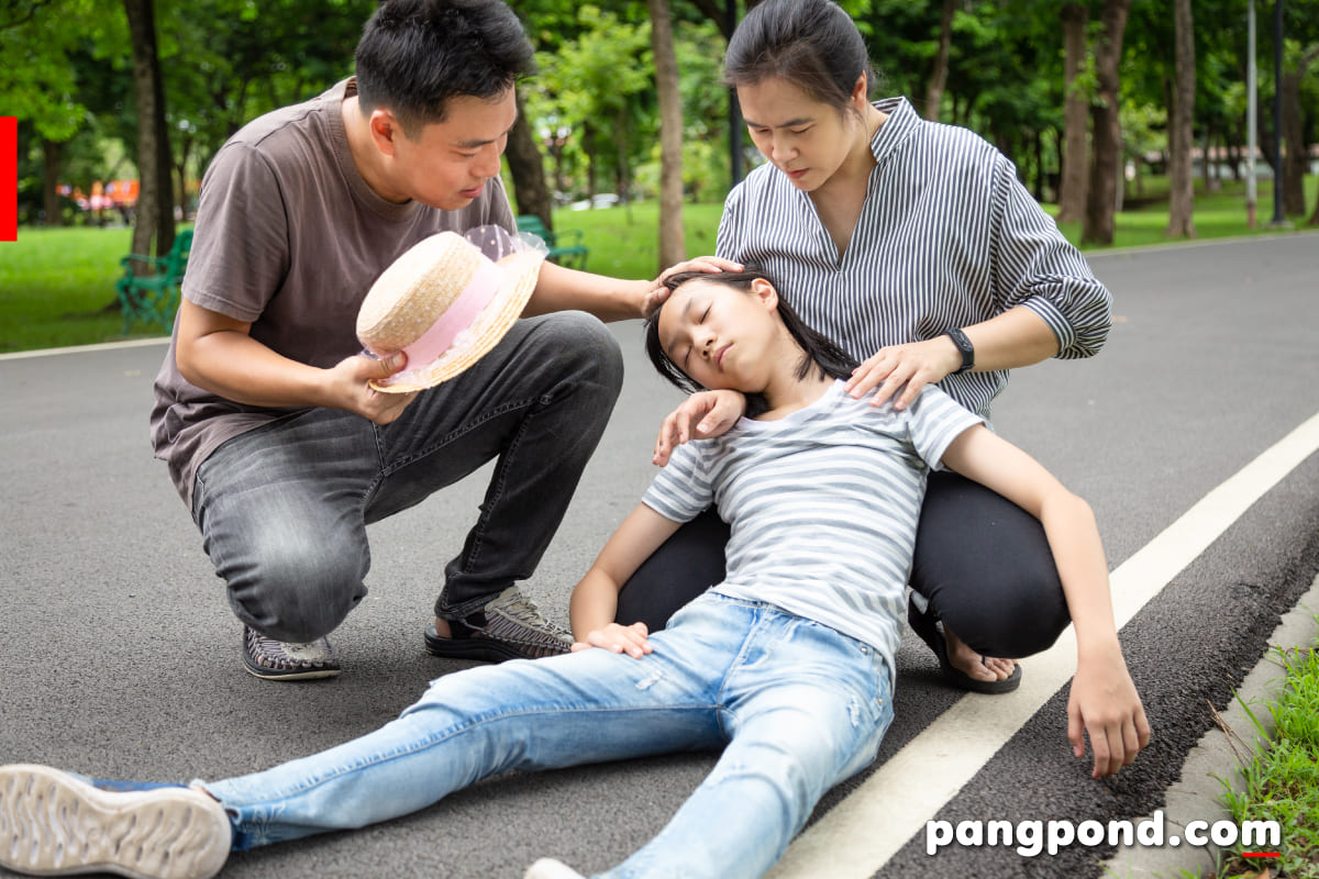- ถ้าเป็นลมหน้ามืด อาจหมดสติจนไม่รู้สึกตัวได้โดยก่อนเป็นลมหน้ามืดอาจใจหวิวใจสั่น หรือเวียนศีรษะแล้วหมดแรงฟุบตัวลงกับพื้น (มักจะไม่ล้มฟาด) – ให้นอนหงายลงกับพื้น ( ศีรษะไม่หนุนหมอน) แขนขาเหยียด ใช้หมอนหรือสิ่งอื่นรองขา และเท้าให้สูงกว่าลำตัว