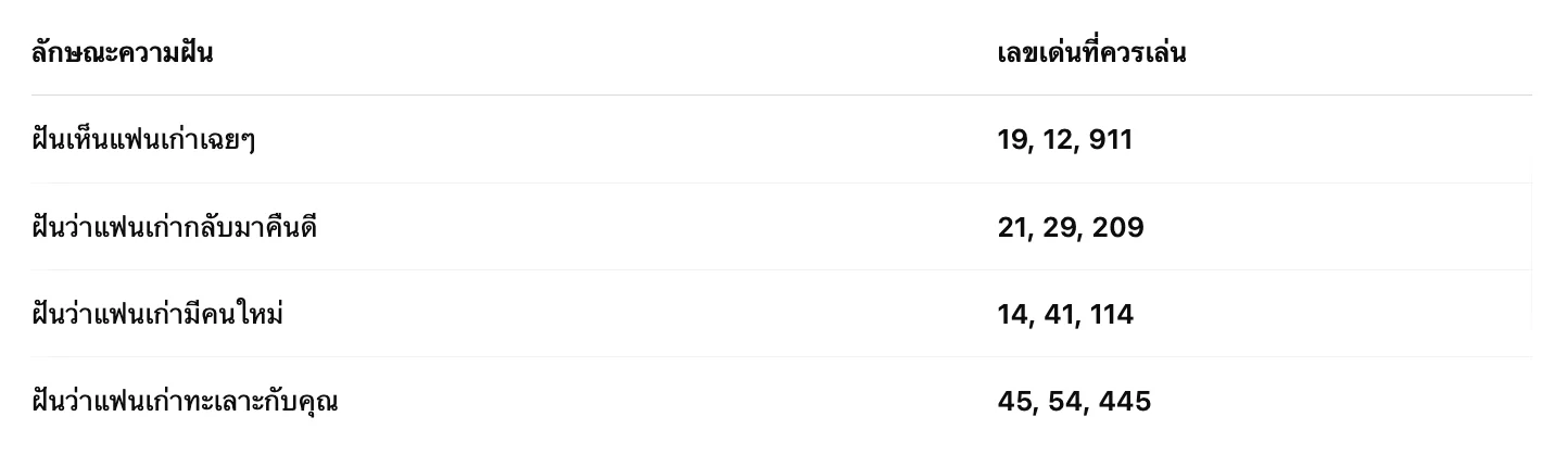 สรุป: ฝันเห็นแฟนเก่า ควรตีเลขอะไร?
