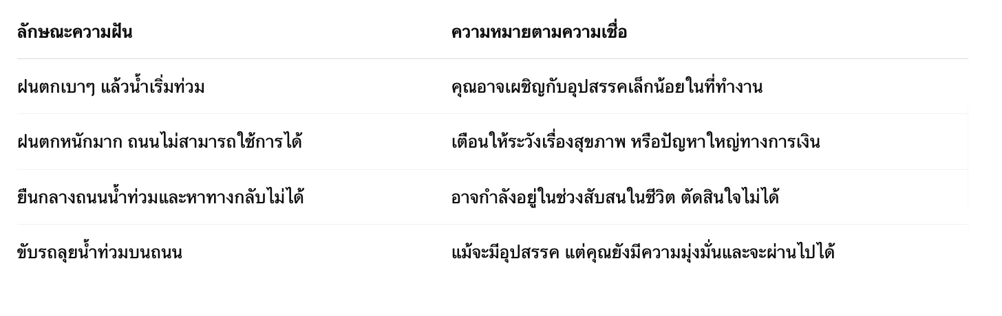 ตีความความฝัน: ฝนตกน้ำท่วมถนน ตามความเชื่อไทย