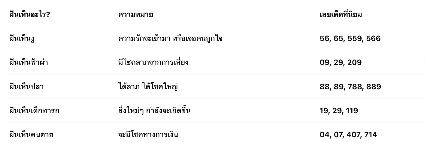 ตัวอย่างการตีเลขเด็ดจากตำราฝันยอดนิยม