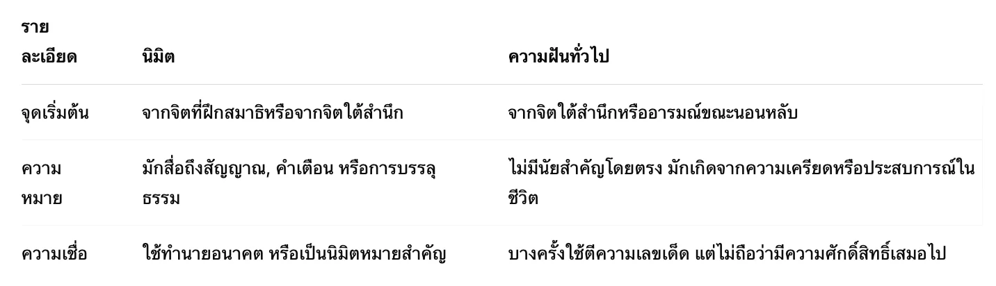 สรุป: นิมิต คือฝัน ที่มีความหมายลึกซึ้งมากกว่าฝันทั่วไป มักเกี่ยวข้องกับพลังภายใน จิตใจ และการสื่อสารจากเบื้องบน
