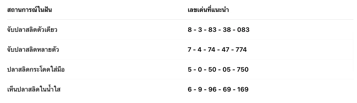 สำหรับคอหวยที่กำลังมองหา แนวทางเลขเด็ด ความฝันนี้สามารถตีความได้หลายตัวเลขที่สัมพันธ์กับ ปลาสลิด และ เหตุการณ์ในฝัน ดังนี้: