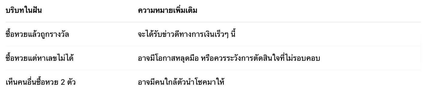 ✨ สรุปความฝันว่า “ซื้อหวย 2 ตัว”