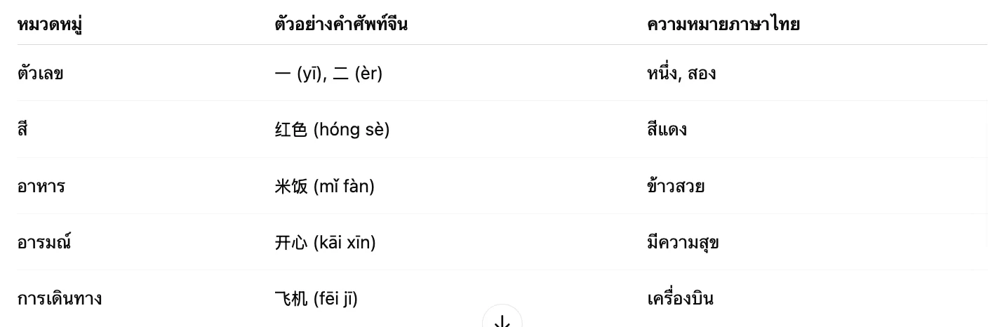 ตัวอย่างหมวดหมู่ คำศัพท์ภาษาจีน ที่ควรเริ่มเรียน