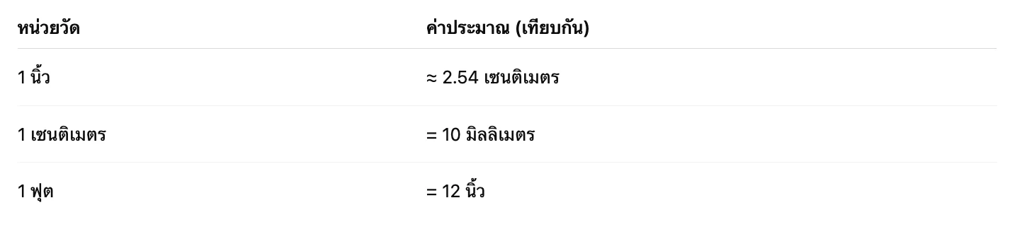 ระบบเมตริก (Metric System): มักใช้ในประเทศไทย มีหน่วยเป็น มิลลิเมตร (mm) และ เซนติเมตร (cm)
