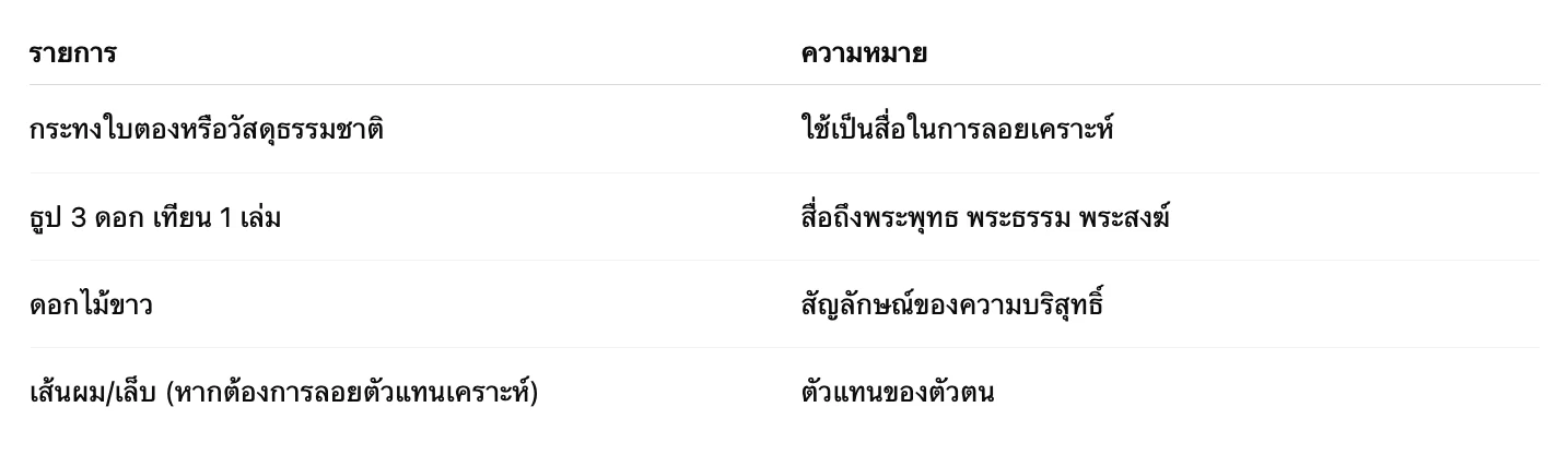 ? สิ่งที่ควรเตรียมในพิธีลอยเคราะห์