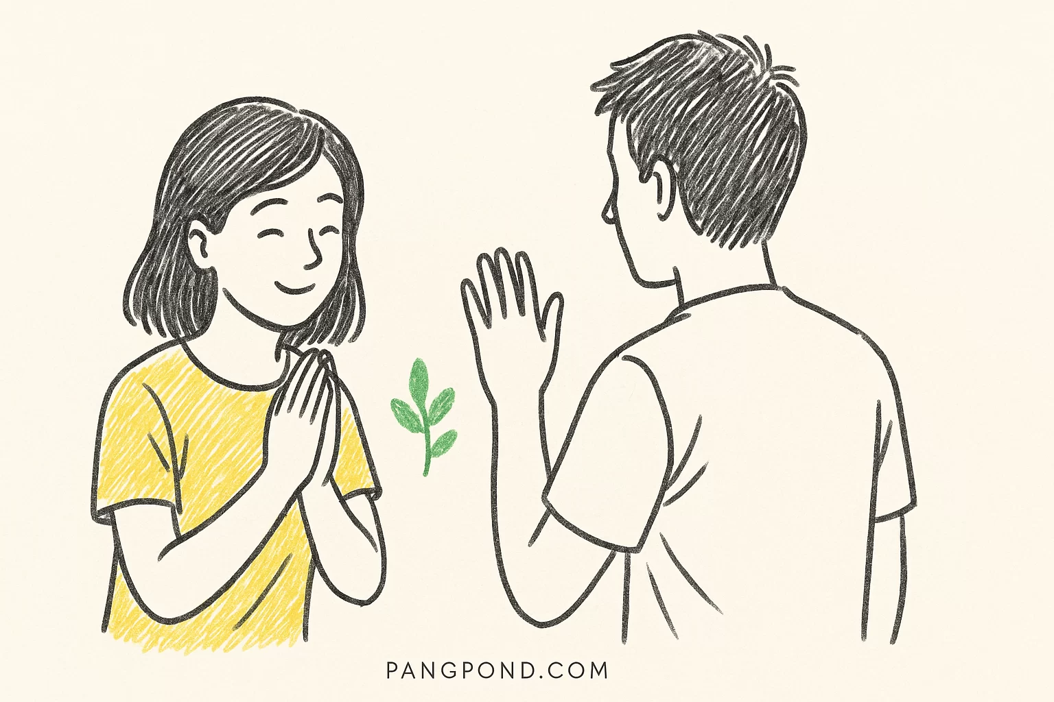 กล่าวขอบคุณและขอพรให้กันอย่างจริงใจ