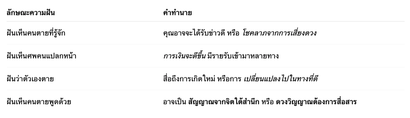 ✅ ความหมายของการฝันเห็นคนตาย ตามตำราโบราณ