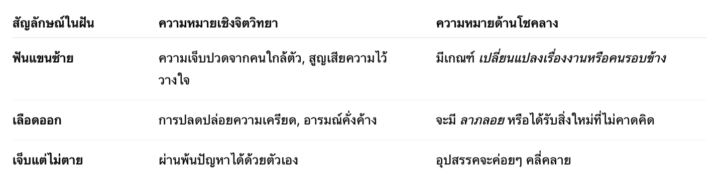 Q: ฝันว่าโดนฟันแขนซ้ายแต่ไม่เจ็บจริง จะมีโชคหรือไม่?