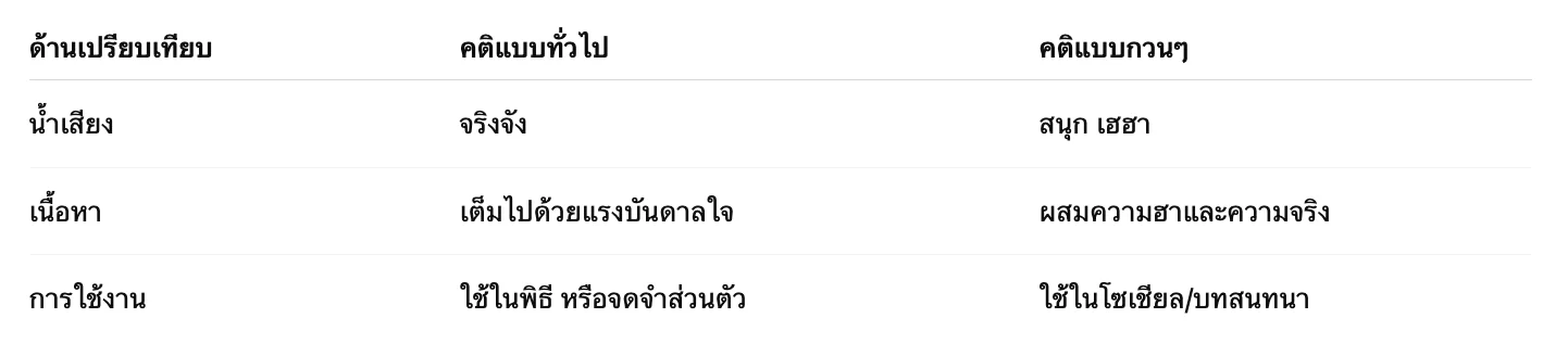 ข้อเปรียบเทียบ: คติประจำใจแบบทั่วไป vs กวนๆ