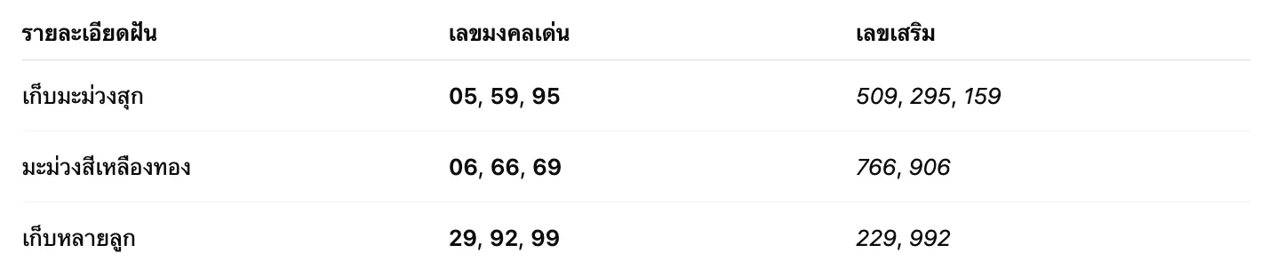ฝัน เก็บมะม่วงสุก เลขเด็ด
