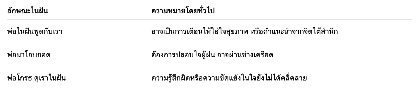 ฝันเห็นบิดาที่ล่วงลับไปแล้ว หมายถึงอะไร? ลางบอกเหตุ ความเชื่อ และคำแนะนำตามหลักจิตวิทยาและพุทธศาสนา