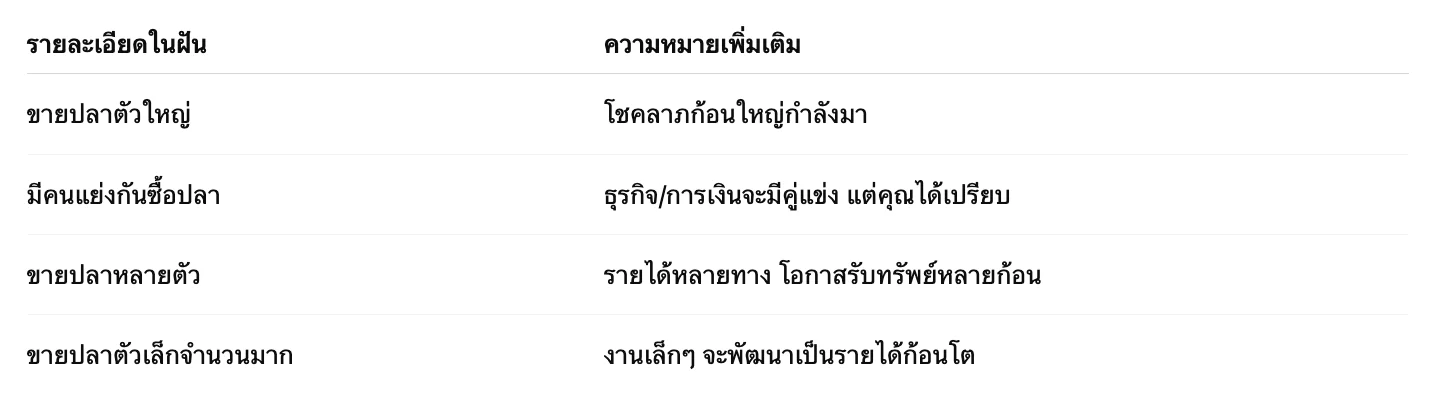 หากคุณฝันว่า กำลังขายปลาในตลาด หรือ มีคนมาซื้อปลาจากคุณ นั่นอาจเป็นสัญญาณว่า:
