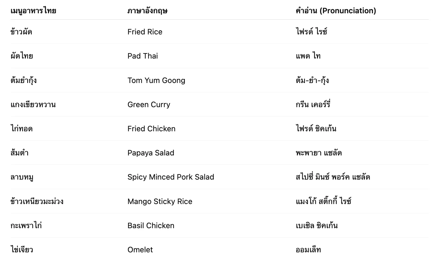 ?️ แนะนำ “เมนูอาหาร ภาษาอังกฤษ พร้อมคำอ่าน” สำหรับแม่ค้าออนไลน์ นักเรียน ผู้ประกอบการร้านอาหาร และนักท่องเที่ยว