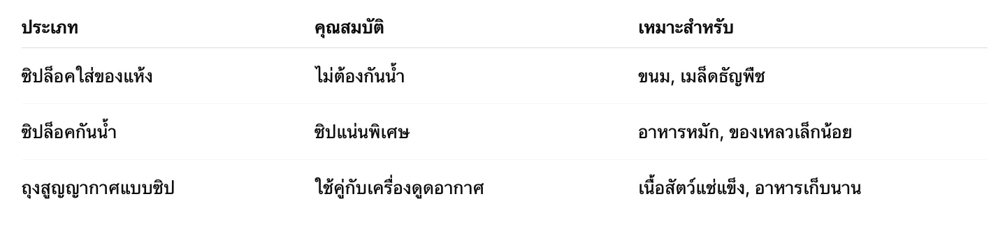 ? ประเภทของถุงซิปล็อคที่เหมาะสำหรับใส่อาหาร