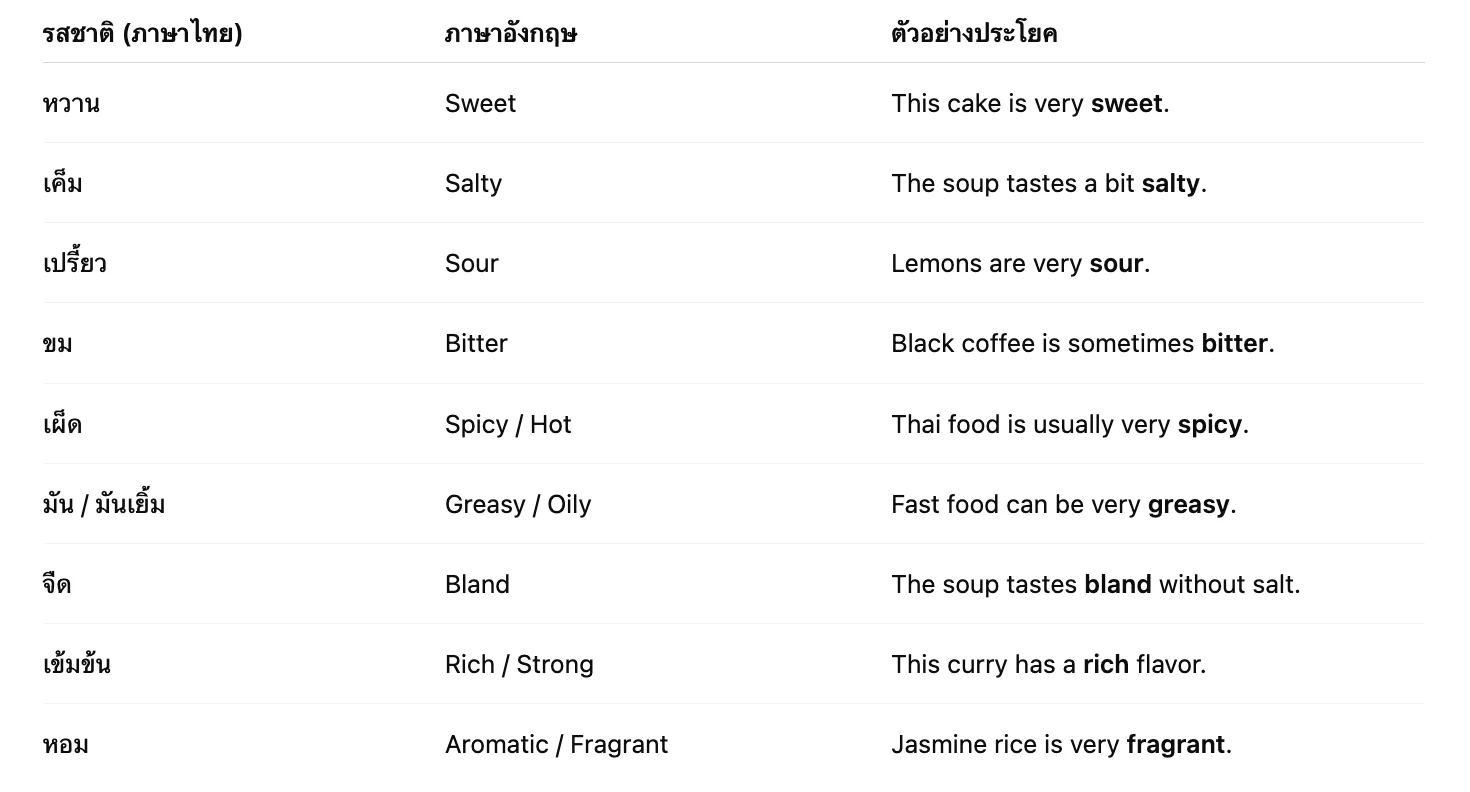 รสชาติอาหาร ภาษาอังกฤษ รวมคำศัพท์และประโยคที่ใช้บ่อยในการสื่อสาร