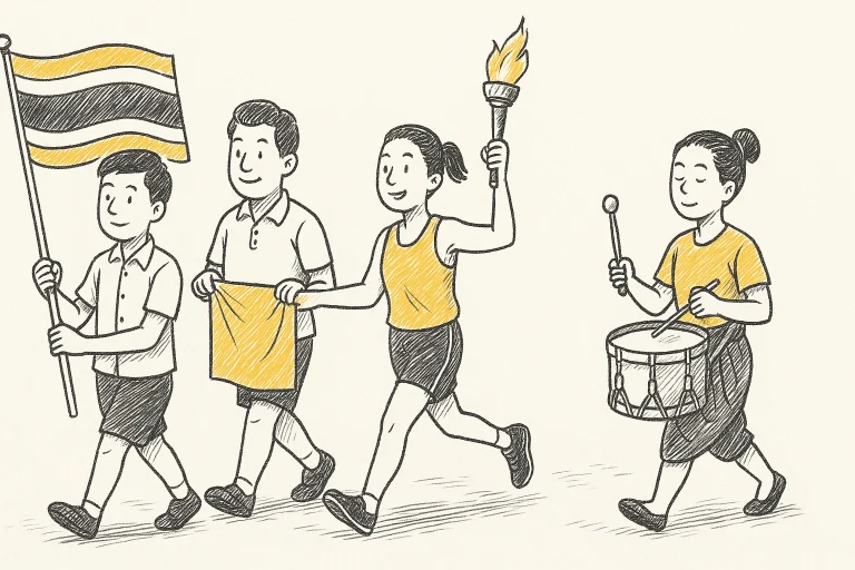 ลำดับ ผัง ขบวน พาเหรด กีฬา สี (2569) ลำผังขบวนพาเหรดกีฬาสีระ